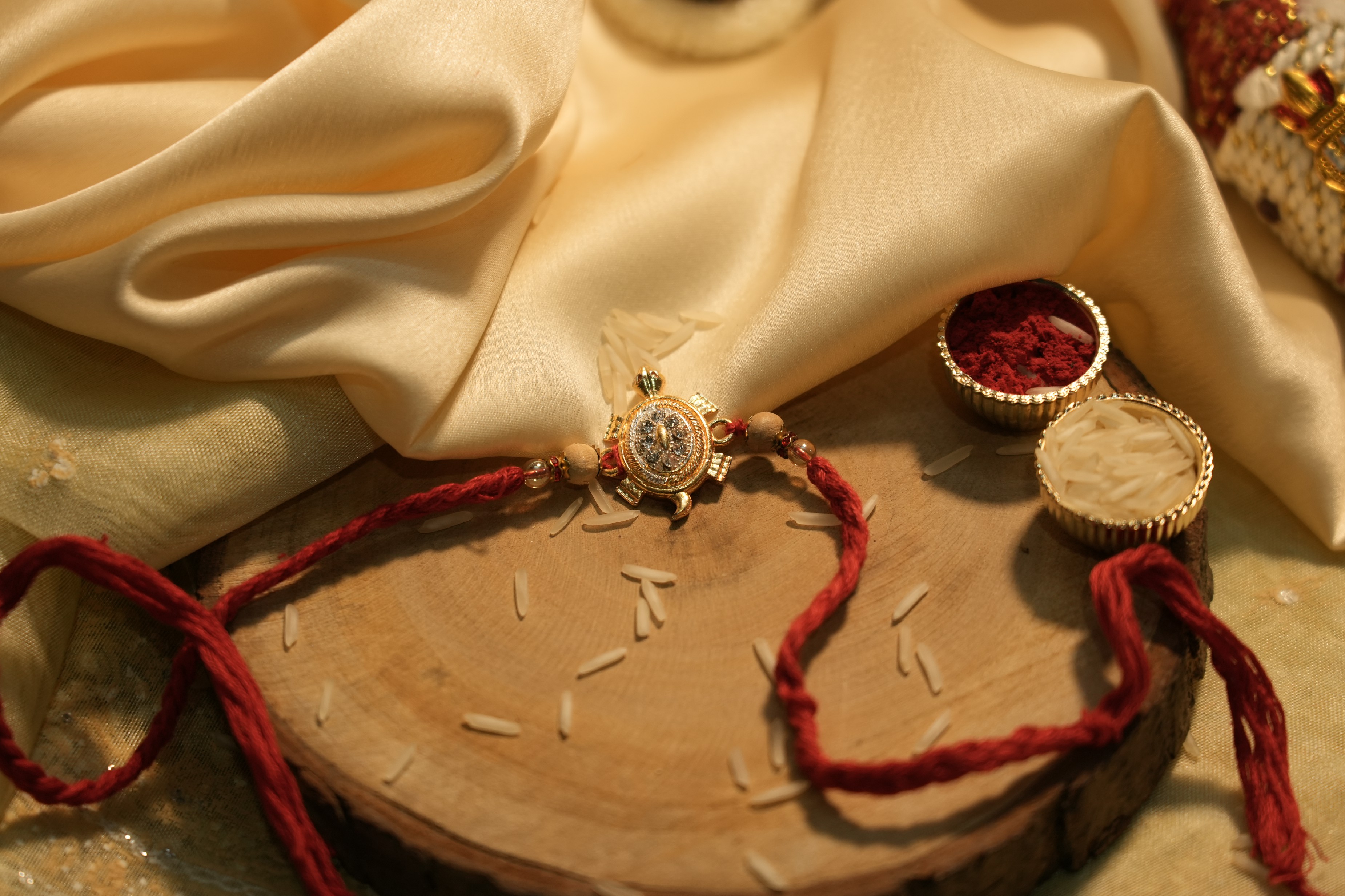 Auspicious Golden Tortoise Rakhi With Diamonds